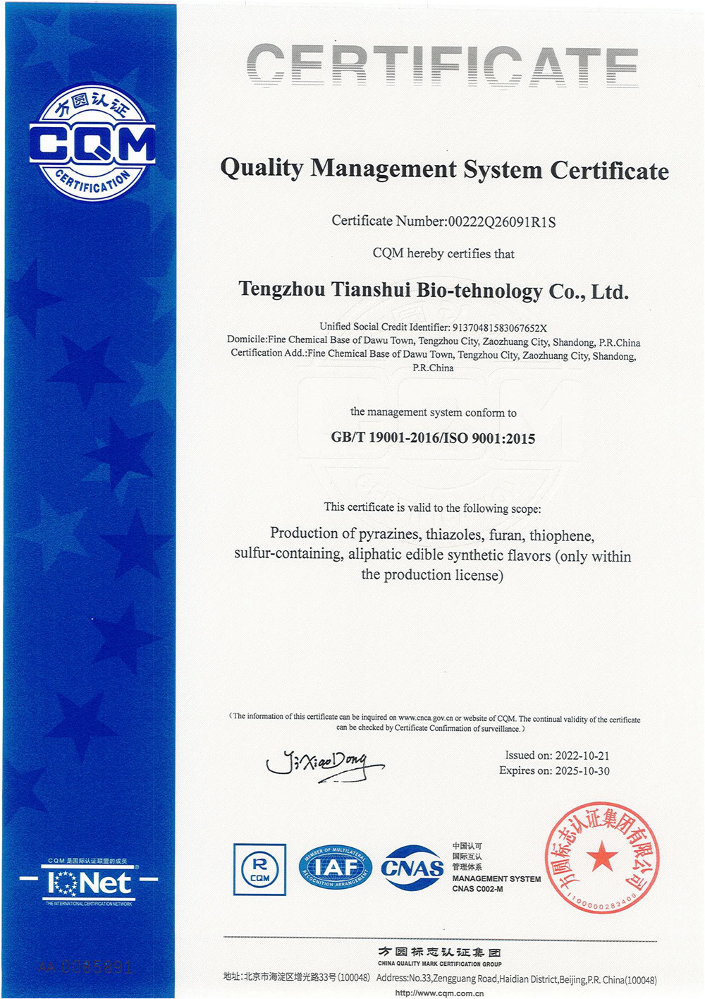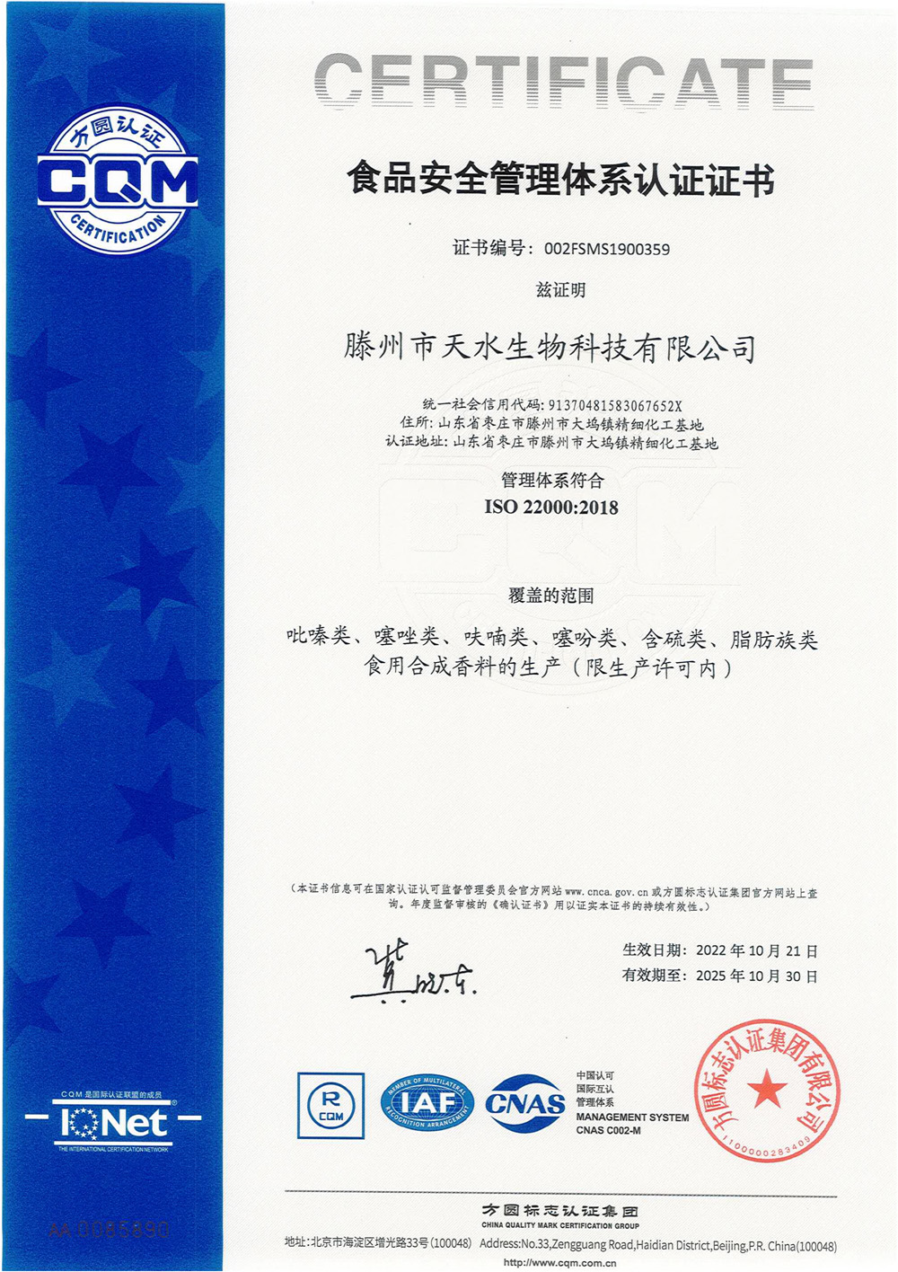 滕州市天水生物科技有限公司成立于2011年9月,是目前國內(nèi)雜環(huán)類合成食品香料、日化香料和醫(yī)藥中間體生產(chǎn)經(jīng)營的綜合性企業(yè)。坐落于山東省滕州市生物醫(yī)藥產(chǎn)業(yè)基地,總投資5000余萬元,占地面積約30000平方米,員工百余人。公司先后被評為高新技術(shù)企業(yè)、專精特新中小企業(yè)、科技型中小企業(yè),建有市級重點實驗室1處,并先后獲得ISO9001質(zhì)量體系認證、ISO22000食品安全體系認證、kosher認證和Halal認證。是香精香料及食品配料協(xié)會會員單位及滕州市中小企業(yè)協(xié)會理事單位。